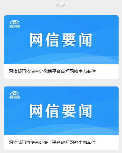 近日,针对微博平台未落实信息内容管理主体责任,在热搜榜单主榜高位呈现大量炒作明星个人动态和琐事类词条等不良信息内容,破坏网络生态的问题,国家网信办指导北京市网信办,依据《网络信息内容生态治理规定》等有关规定,对微博平台采取约谈、责令限期改正、警告、从严处理责任人等处置处罚措施。