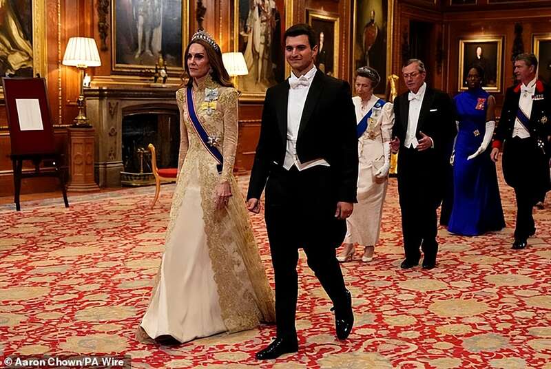 蒂芙尼的丈夫迈克尔·布洛克似乎受到了更高规格的待遇,因为他被安排走在了凯特王妃的身边。但身着晚礼服的迈克尔亮相时,不少人都发出了疑问,“那个陪在凯特身边的人是谁?”显然,现年28岁的迈克尔的知名度和影响力还没有那么广泛,不过根据美国媒体的说法,这位总统女婿很快就会占据一席之地。