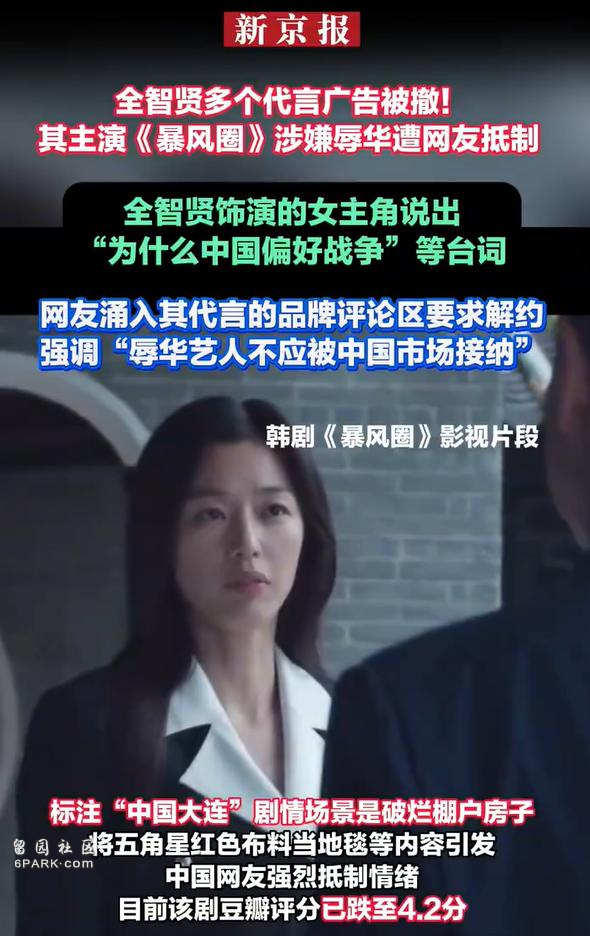 作为演员,并说出辱华台词的全智贤,也不可能全身而退。
