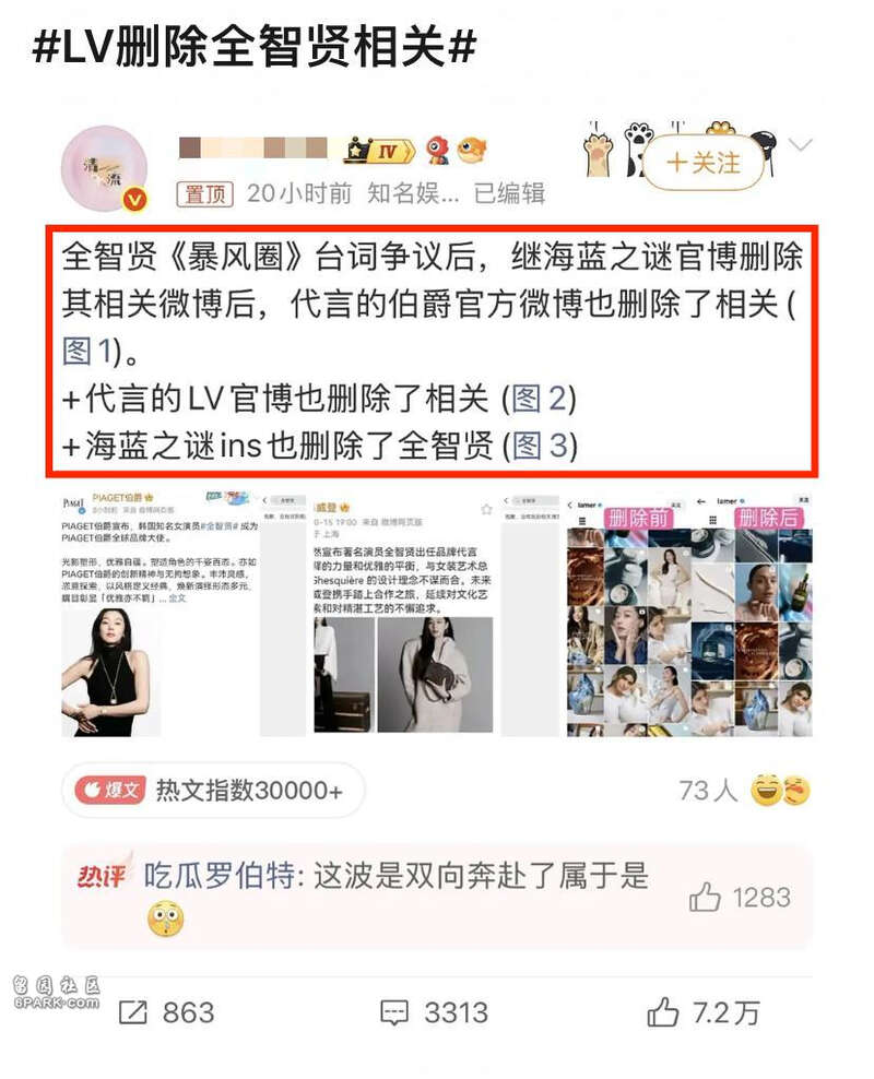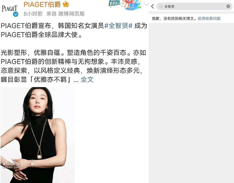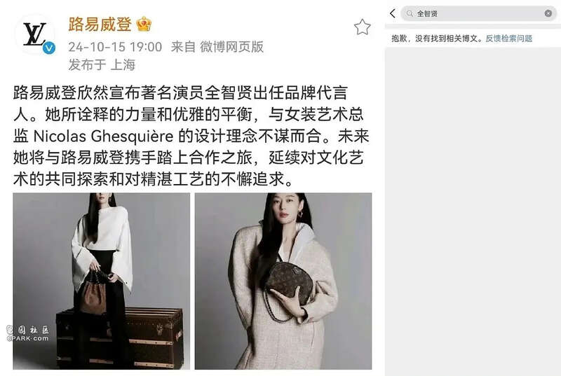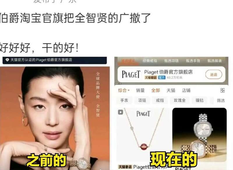 随后,伯爵跟路易威登也紧随其后,删除了全智贤的代言宣传发文。