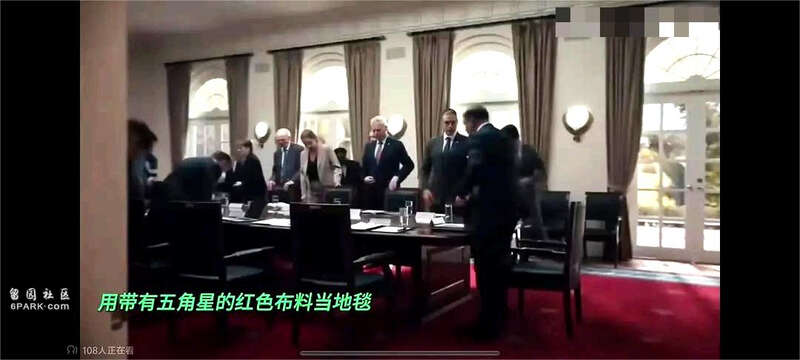 制作方故意找来带有五角星的红色布料当地毯,任由这些外国人将五星红旗的象征,踩在脚下……