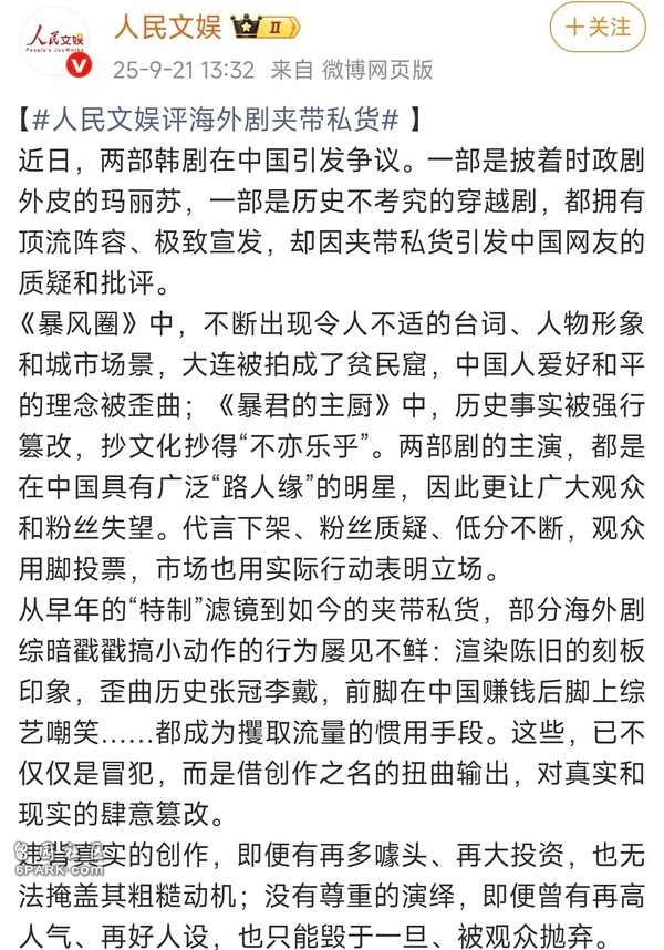 在发文中,人民网毫不留情地指出,韩国制作团队在这部剧里“暗戳戳搞小动作”。