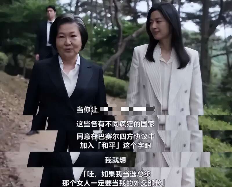 剧中,不仅通过全智贤的台词,将中国描绘为喜欢在边境囤核弹的“好战国家”,还让不少反派角色直接用中文对话。