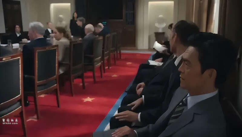 除此之外,剧中还刻意用灰冷滤镜,把大连营造成破败不堪的棚户区,甚至还出现了政要集会中,把印有五星图案的地毯踩在脚下的画面。