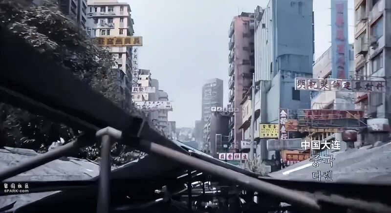 同样是阴森恐怖的滤镜,航拍镜头下的沈阳,破败不堪,气氛压抑,可以说是韩影的惯常手法了。