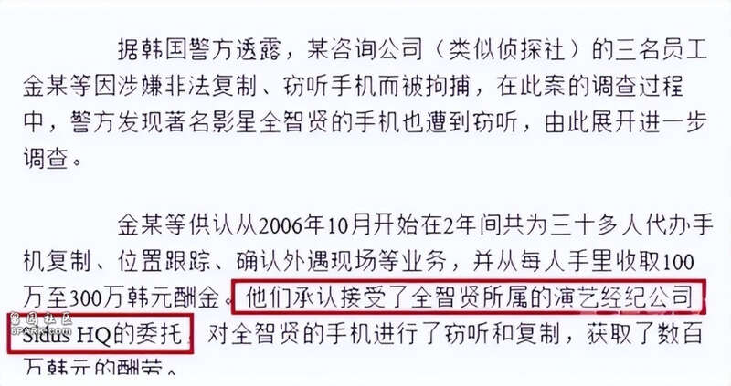 当时得知自己被监听的全智贤,没有马上行动,而是一直耐着性子伺机等待,到了合约到期前三天,才寻求警方的帮助,导致涉案人员被一举端掉。