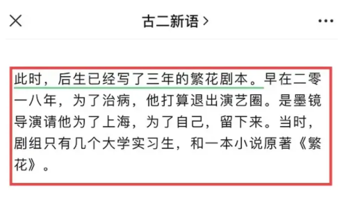这人从两年前就在公众号上发表文章,长期对《繁花》的编剧署名表达不满,后来还公开了几段录音,就为证明自己所言非虚。