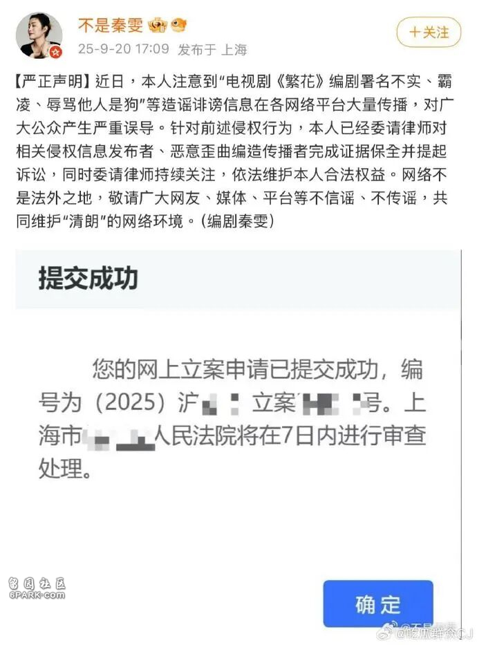 被点名道姓的秦雯也很直白了:“全是造谣诽谤,已经立案起诉。”
