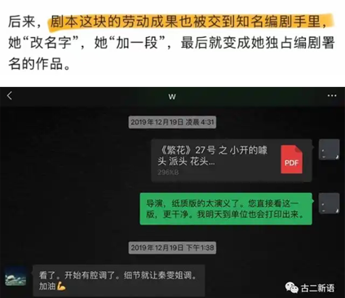 结果等剧拍出来了,小编剧才发现他们把自己的剧本整个换了个壳子,就用了。