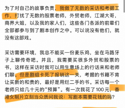 但这些都没有得到剧组的资金支持,哪怕只是报销100块,都会被冷嘲热讽。