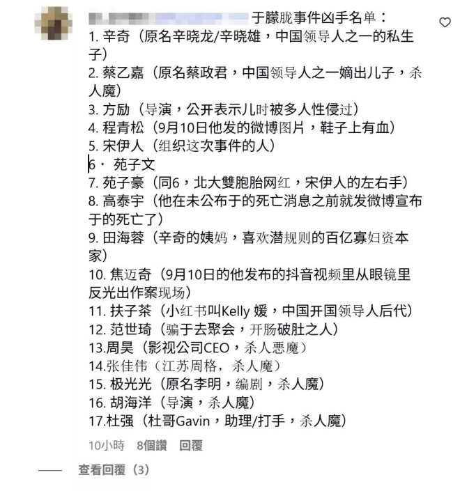 中国知名男星于朦胧出演《三生三世十里桃花》爆红,然而11日却惊传坠楼身亡。虽然官方、于朦胧母亲都强调是意外,但外界质疑声浪持续延烧,网络上也不断流出大量疑似现场片段,甚至出现阴谋论,直指于朦胧遭虐杀致死。