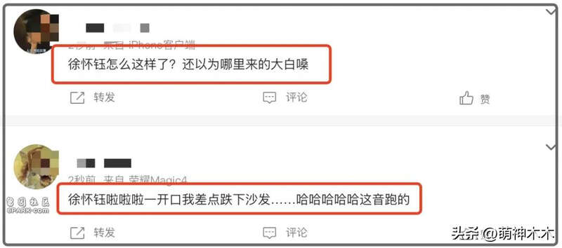而接下来的真唱虽然翻车程度不及《夜空中最亮的星》,但也是被网友一顿吐槽,比如徐怀钰一开口,听不出来一点专业歌手的感觉,整个一大白嗓。