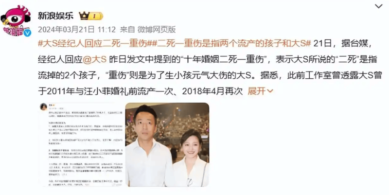 聊到这里,就不得不提汪小菲前妻,当年也是结婚后一直怀不上,动用了各种方式,甚至她还改掉了多年吃素的习惯,最终好不容易怀上了小玥儿,之后又怀了儿子,甚至一度怀上了三胎,结果意外流产,后来前妻说“十年婚姻二死一重伤”,外界才知道两人举办婚礼前几天,她才刚刚流产。