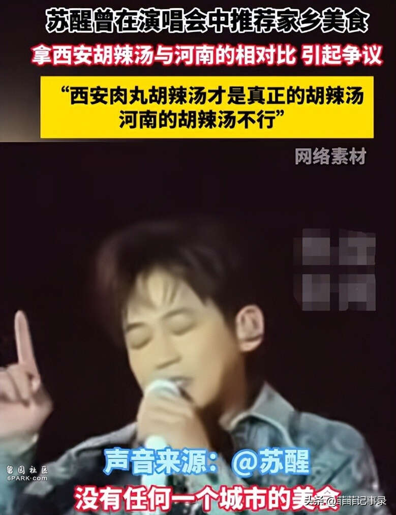 苏醒言论引发舆论在演唱会上,苏醒一句“只有西安的肉丸胡辣汤才是真正的胡辣汤”,在看似随意的比较中,透露出对地域文化的不尊重。