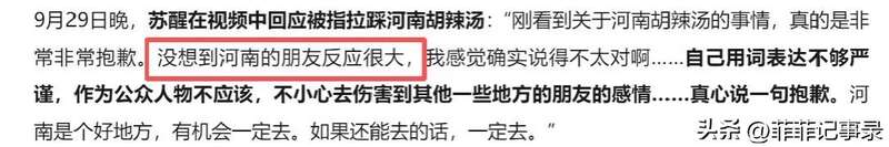 最引发公众讨论的,当属苏醒在演唱会上对河南胡辣汤的不当言论。