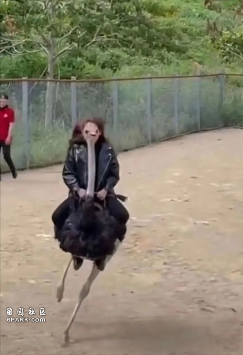 比如骑鸵鸟合影这张,原本是浪漫的“女孩骑鸵鸟”,结果男朋友抓拍得刚好让鸵鸟脖子替换了女友的脸,直接进化成“鸵人混血”新物种。