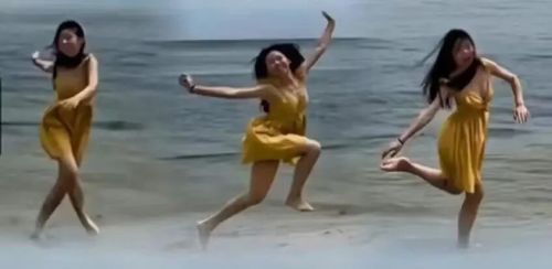 最后压轴的是这张海边黄色裙子三连拍,本来想要“风吹裙摆·仙女下凡”,结果拍出来的动作僵硬又鬼畜……