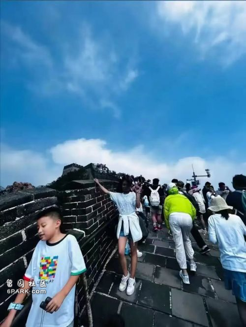 还有长城这张,女朋友兴致勃勃摆好pose,结果在密密麻麻的游客里,她的存在感甚至不如一旁靠墙犯困的小男孩。