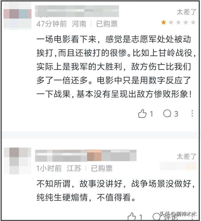 老式主旋律片又来了,甚至连槽点都没变化,《志愿军》上到第三部了,上映两天票房破亿艰难,有观众反馈最期待的上甘岭战役都没拍好,不应该啊!