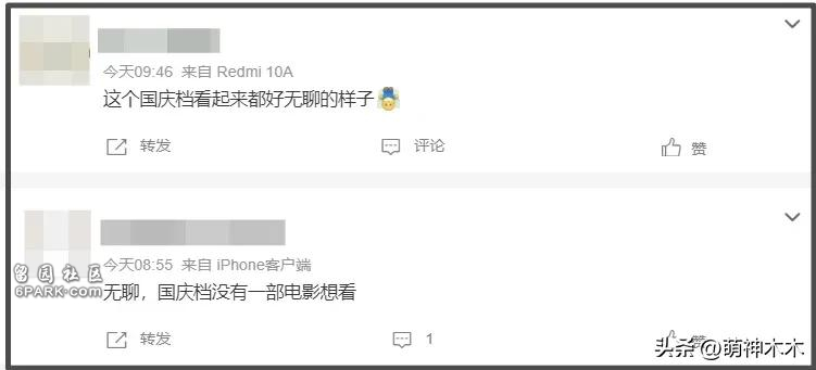 最后还是要强调一下,每个人观影感受不同,目前国庆档电影虽然没有口碑佳片,但也没有大烂片,如果有观影需求,可以参考第一波口碑选一选。
