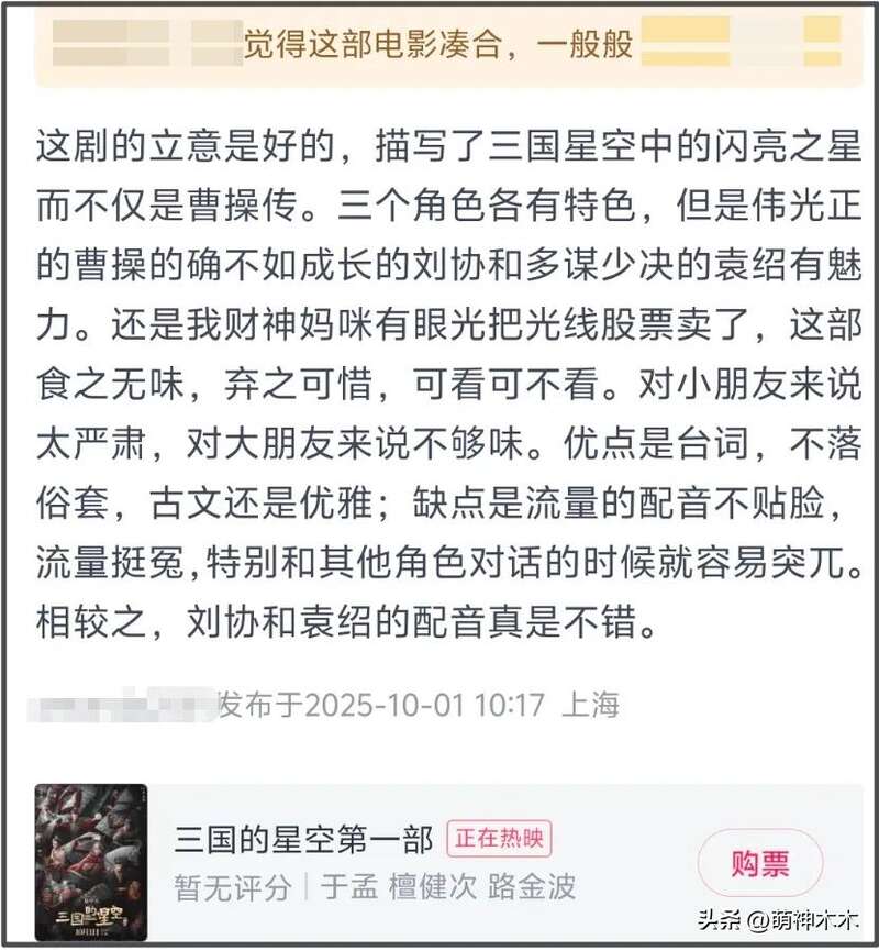 对于三国爱好者来说,平平无奇没太大意思,对动画电影重要受众小朋友来说,又有点复杂有点严肃,某种程度上,挺像粉丝电影,可能更适合对易中天和三国有情怀的观众。