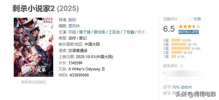 《刺2》的某瓣评分只有6.5分,刚刚过及格线。