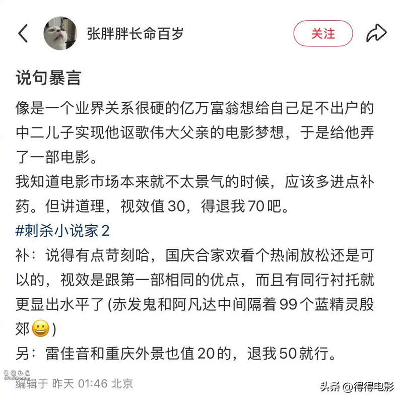 国庆档看完《刺杀小说家2》,走出影院的我只想仰天长啸——
