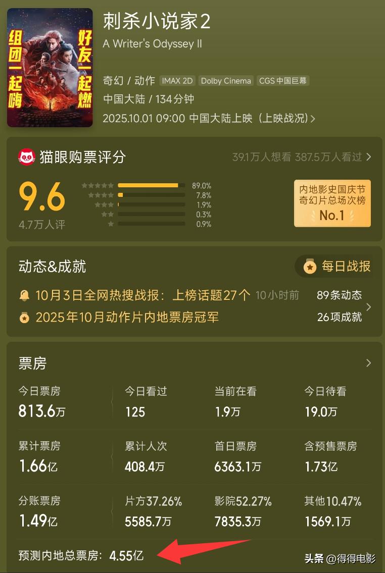 而截止到发稿前,该电影上映4天,票房1.66亿,预测最终票房在4.5亿左右。