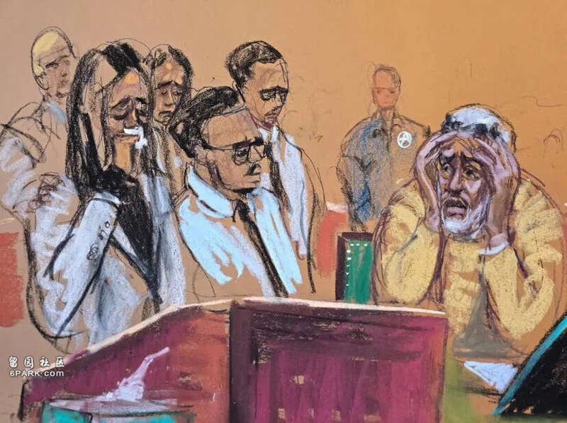听法官宣读判决结果后,吹牛老爹面无表情,一脸麻木,直勾勾盯着前方,一动不动地坐在被告席上,然后他转身看着家人,用口型说了一句“我爱你们,我很抱歉”。