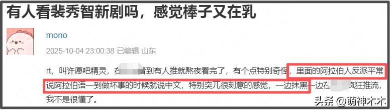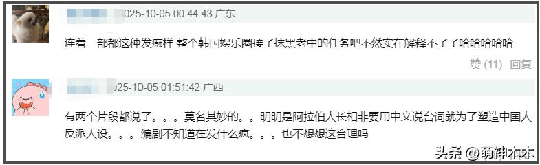 据悉,《许愿吧精灵》是外网网飞独播剧集,没有在中国平台播出,但其在中国的营销不亚于同步播出的中剧,许多网友因为推流的原因被吸引观看,结果发现剧中出现了大量的辱华情节,而且极其突兀。该剧主要语言是韩语和阿拉伯语,但剧中的反派阿拉伯人只要一干坏事就突然说中文,非常刻意且不怀好意。