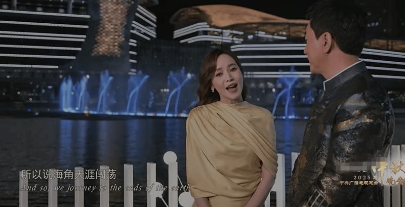 晚会开场,侯佩岑以一袭明黄色礼服登场,身姿窈窕。在介绍环节,她强调自己是来自台北的侯佩岑,并表示中秋明月一直在中国人的心中是那么的圆那么的满,可以说非常完整且完美的开场,既表达了个人出身,也有对祖国统一的期盼。