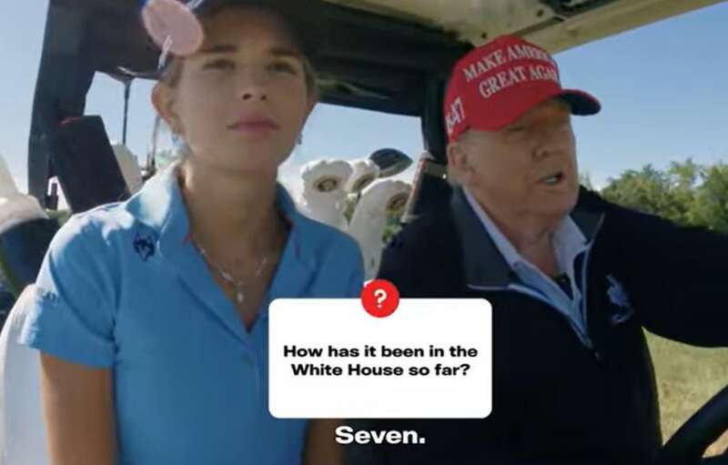 除了围绕着高尔夫球的交流之外,凯和祖父也聊了一些其他方面的话题。凯问他的祖父,重返椭圆形办公室的感觉如何?特朗普称:“这很棒,我过得很开心。”随后就自夸起来,他称:“我阻止了七场冲突。七场。希望我们能让普京和泽连斯基停止杀戮。这很好,经济也很好。”