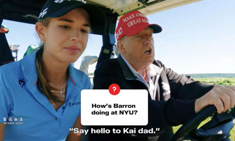 在打了一会儿球重新回到小车上后,祖孙俩的话题又转移到了巴伦·特朗普这位很少公开露面的大学生身上,他是特朗普最小的儿子,只比凯年长1岁。