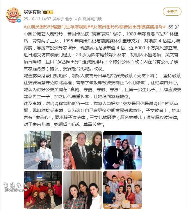 从依附豪门的“林太太”到自成豪门的“谢玲玲”,她的半生仿佛一场现实版《傲骨贤妻》。正如她所言,离婚后“终于有空间发展自己”——豪门规则或许能束缚人一时,但经济独立与自我觉醒,才是真正的破局之道。