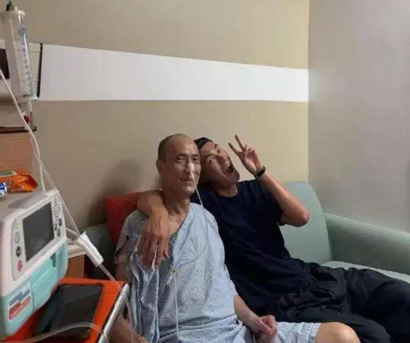 杨祐宁分享病中的父亲,看得出来可能在抢救,父亲是微笑的,尽管鼻子还插着氧管,杨祐宁搂着父亲的肩膀,父亲年轻时候一定也是大帅哥,父子轮廓都很像。