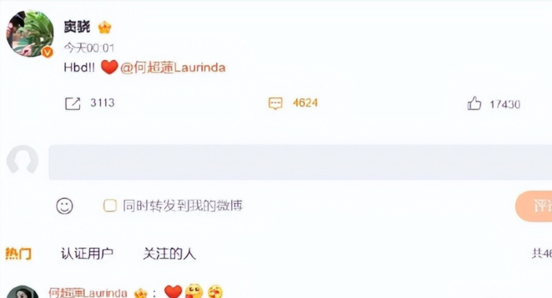 不过在何超莲生日时,窦骁还是在社交媒体上发英文缩写为其庆生,
