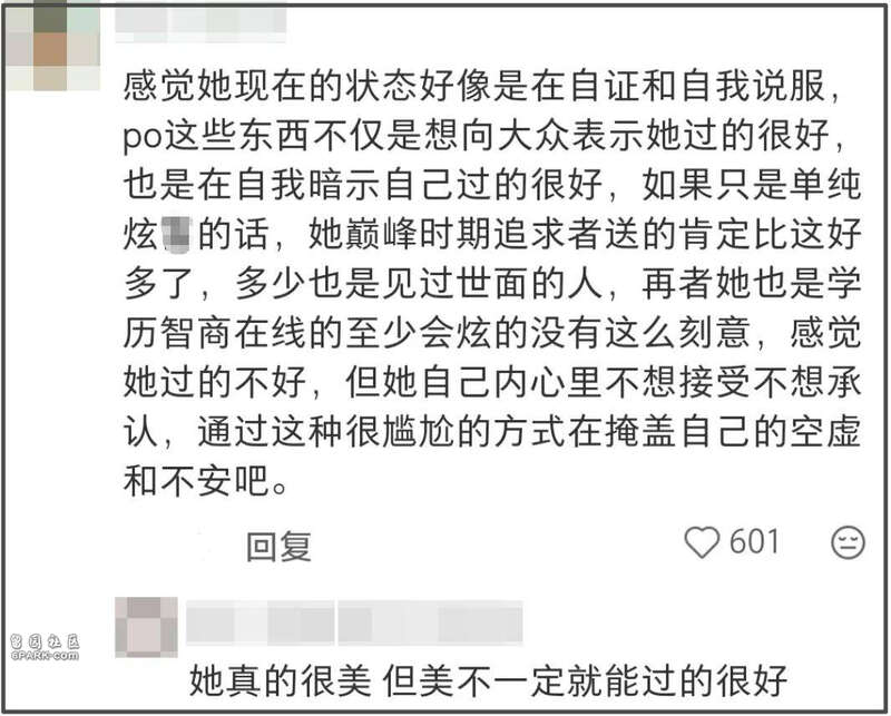 还记得2024年,陈匡怡被拍到当众换衣,被外界怀疑精神状态不佳,接下来一年时间,通过陈匡怡的社媒更新,越来越多人注意到她似乎陷入了自证和自我说服情绪——陈匡怡频繁晒出所谓追求者送给她的高价礼物,竭力对外证明自己过得非常好。
