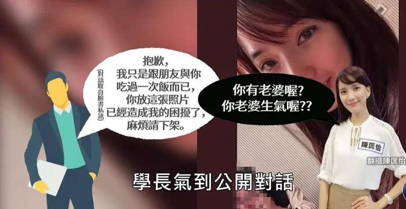 陈匡怡的反应完全是意料之外,首先她不肯删,其次她还对着黄学长来了一句:“你有老婆?你老婆生气喔?好啦,我只是觉得那张(自拍)很美。”