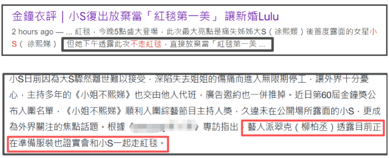 实际上,金钟奖并不适合当作复出场合,不管小S怎么找理由,至少整个红毯现场画风,和她口中让外界想起大S格格不入,只能说她不出席红毯属于明智选择。