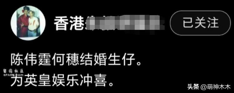 早在何穗八月份清空社交平台时,就有香港知名狗仔爆料她退圈的原因——和陈伟霆结婚并怀孕。狗仔还透露,二人分分合合在一起五年,这次之所以结婚,有部分原因是为了给英皇公司冲喜。