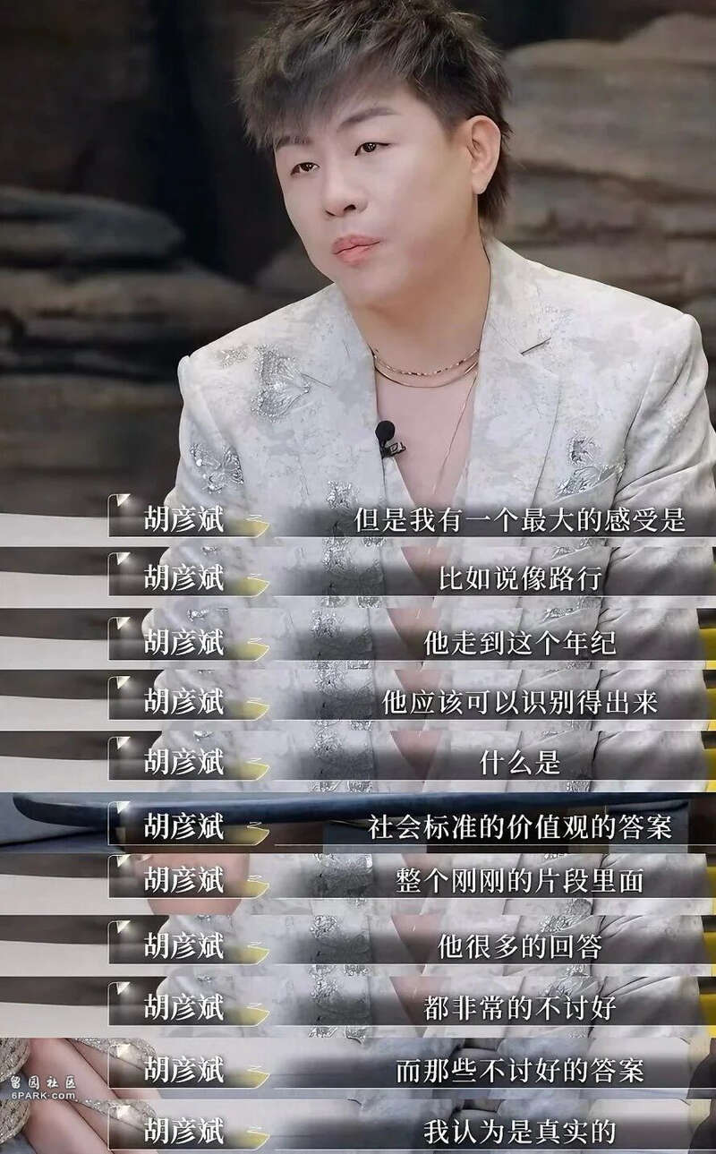 “男人不能太善良”也好,“生儿子”也罢,我始终认同胡彦斌的解读,他说路行只是说话不够讨喜,但都没有错。