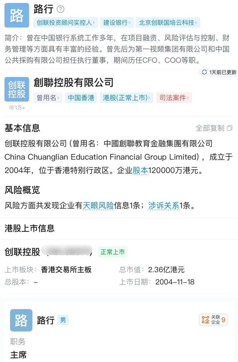 2014年底,路行委任力创联控股有限公司执行董事及董事会主席,该公司光注册资本就高达5000万元人民币(实缴1100万元人民币)。