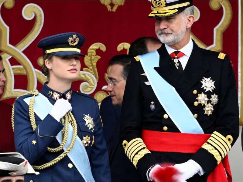 作为西班牙王位继承人,19岁的莱昂诺尔公主在此次国庆庆典中的表现可圈可点。她身着一身深蓝色军装,头戴同色系军帽,身姿挺拔、英气十足。