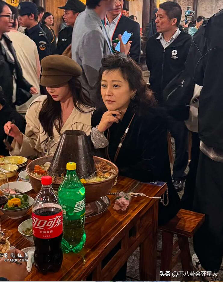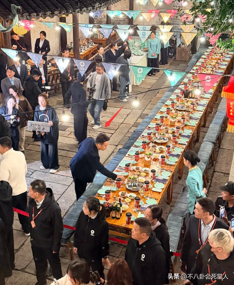 这场“长桌宴”在户外,不少普通游客都看到了在场的明星。