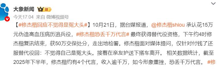 记者问修杰楷“对于花钱了却没有取消服役,会不会感到冤枉”?