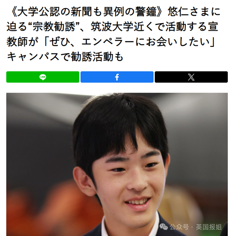 但好景不长,日媒近日曝出悠仁被美国宗教势力盯上,对方甚至派出传教士和美女教徒蹲点,计划用去教室传教的方式,千方百计想拉他入教。