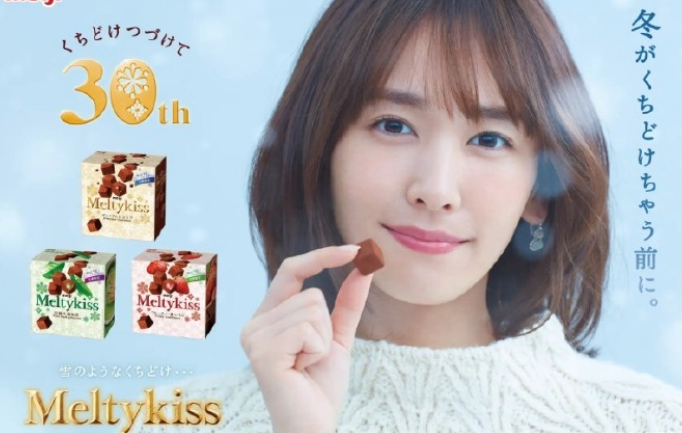 明治的这款“雪吻”巧克力自从1992年发售以来,曾邀请过多位女艺人拍摄广告,例如今井美树、森高千里、广末凉子、松岛菜菜子等人,每位都是当时最顶级最红的女明星。但自从2011年和新垣结衣合作后,雪吻巧克力的广告就再也没换过人。不仅如此,广告歌也一直都是新垣结衣唱的《冬天的kiss》。相信很多爱新垣结衣的朋友都有看过这组照片吧,这个就是明治跟gakki合作的第一支广告。