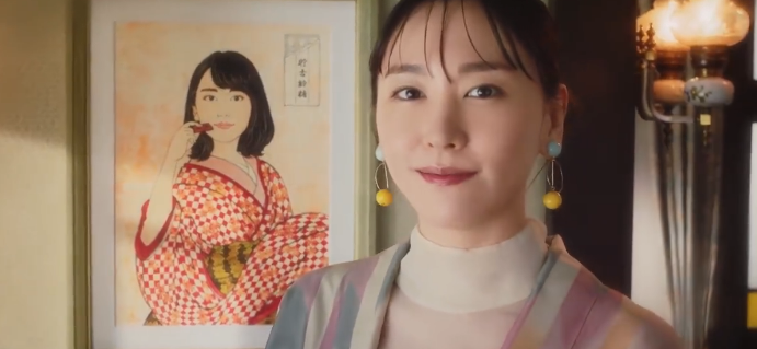 其实新垣结衣还是有和明治保持着合作的,她今年5月代言起了明治的另一款产品“生巧克力”。为了推这个新款,新垣结衣一改冬日女神的形象,反而是穿起了“和服+西装”的混搭风,而广告背景中出现的那一幅以浮世绘风格描绘的新垣结衣画像则是这个广告的重点——日本第一个吃到巧克力的人。只不过当时大家都在关注gakki 的刘海是怎么回事,没人会想到今年十月再见,“雪吻”女神竟不再是她了。