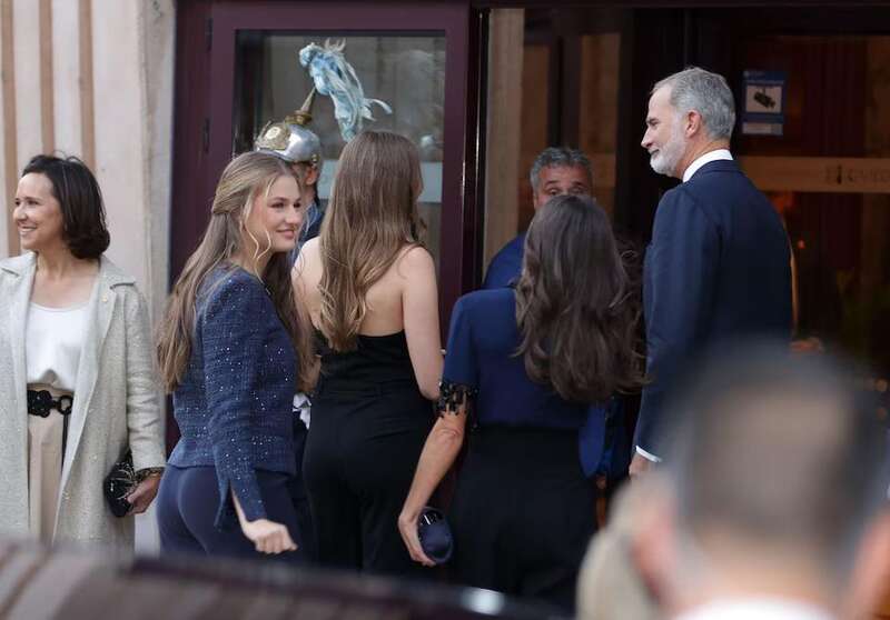 当地时间10月23日晚,西班牙国王费利佩六世和王后莱蒂齐亚以及他们的两个女儿莱昂诺尔公主、索菲亚公主,一同出现在奥维耶多的会议中心礼堂,参加“第33届阿斯图里亚斯公主奖颁奖音乐会”,当天主要演奏的勃拉姆斯和德沃夏克的作品。
