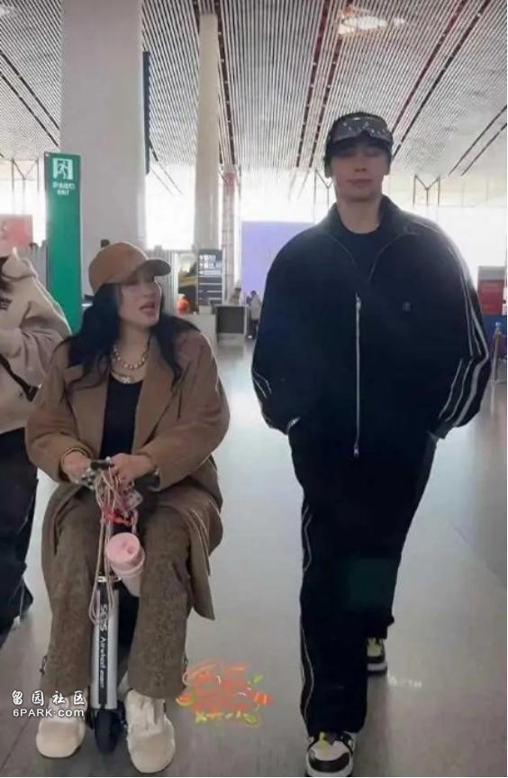 有网友看后,猜测钟丽缇的体重,可能已接近180磅。照片中钟丽缇正踩着电动行李箱向前滑行。